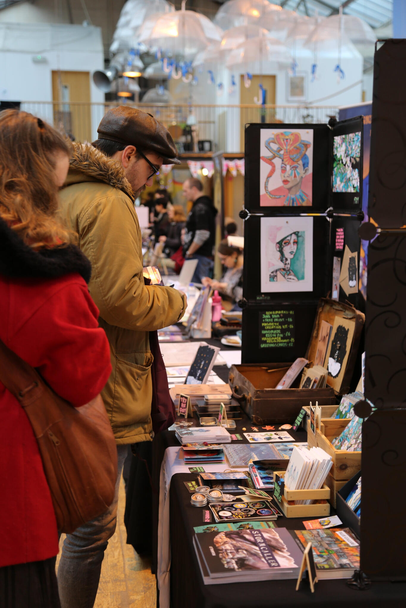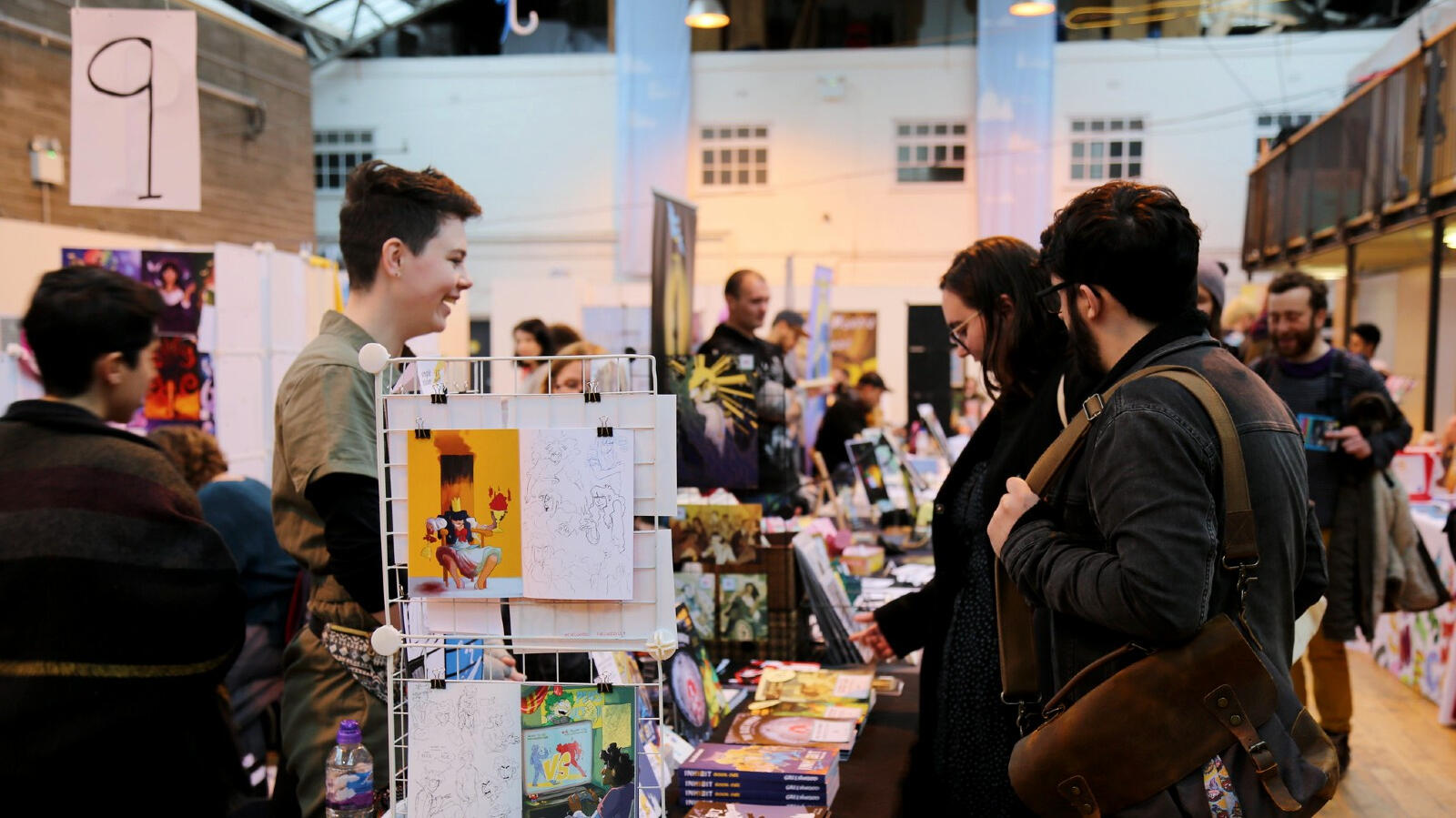Prints, stickers, pin badges and merchandise are an expected sight at most conventions. While beautiful, they aren't the focus of this event. Exhibitors may sell some merchandise, but the majority of your display must be your own original material (comics, games, zines, etc). Furthermore, merchandise on your table should ideally relate to the your main projects, such as prints of characters from your graphic novel.